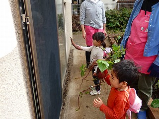 サツマイモを見つけてもらって