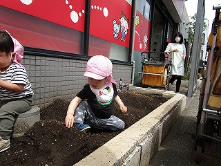 はなまるホームの畑で植え付けし…