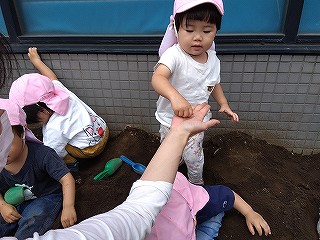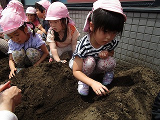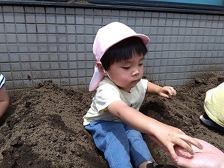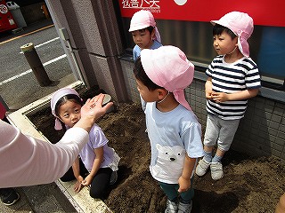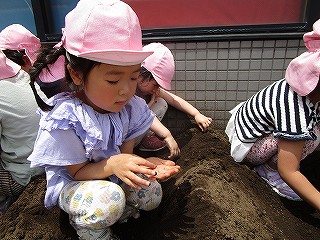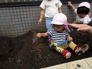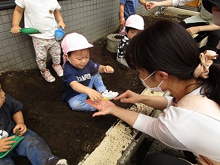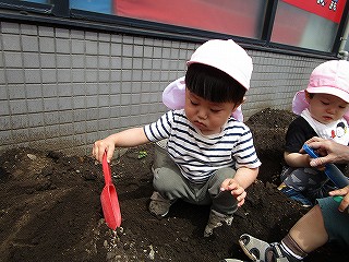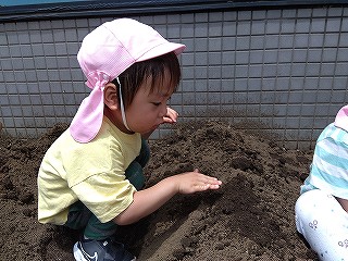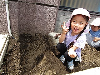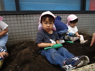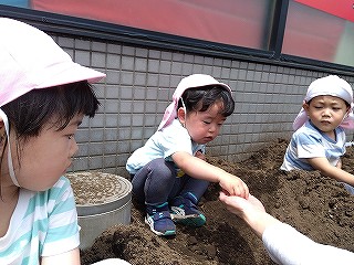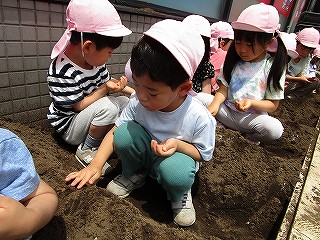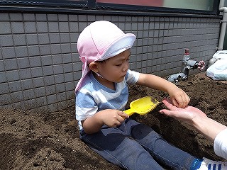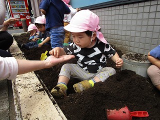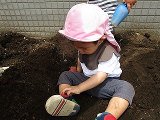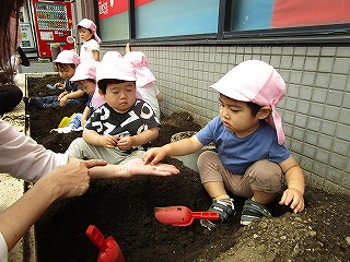 それぞれ、土に触れて種まきしました(^-^)