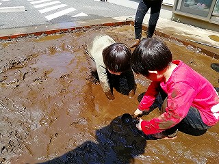 どろどろの中に足を入れたり…
