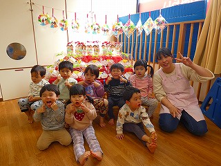 ひな壇の前でクラスごとにパチリ📷