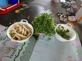 大根の葉っぱをちぎったり
