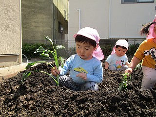 目と手で感じて育てていくことがねらい。