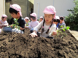 初めて触れるさつまいもの苗