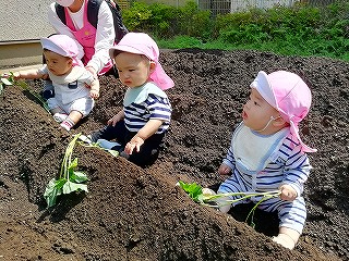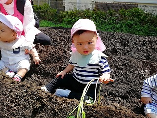 お砂場とは違う畑の土を感じ、