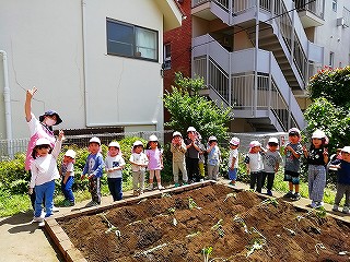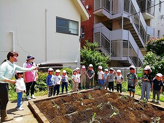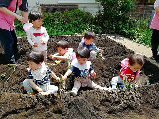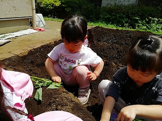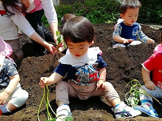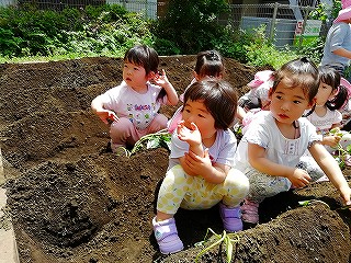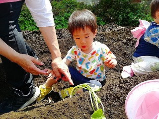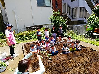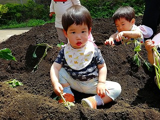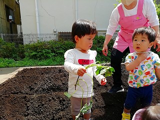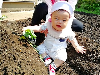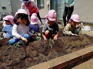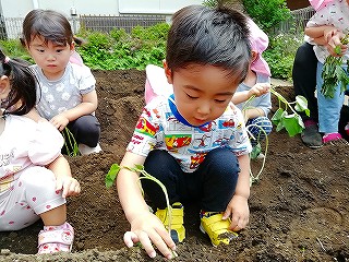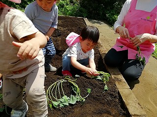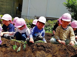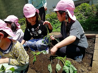 5月13日、みんなで苗を植えつけ