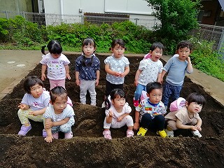 苗を植えて土をかけて…