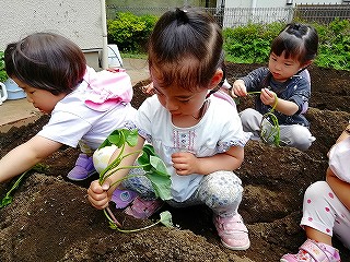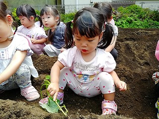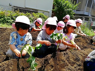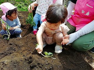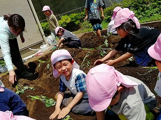 楽しく苗の植え付け体験できました。