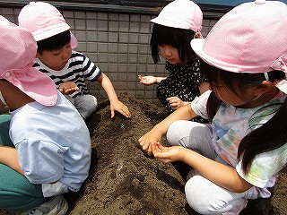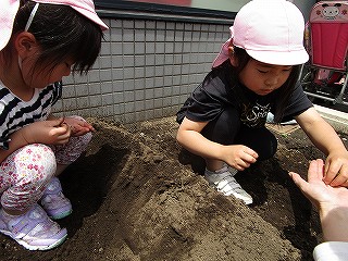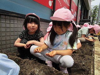 それぞれ、土に触れて種まきしました(^-^)