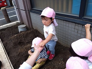 はなまるホームの畑で植え付けし…