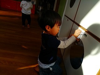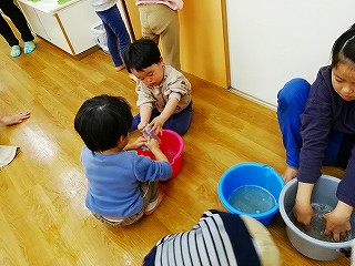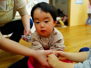 お湯に手を入れるのが
