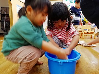 並んで床拭きではなく壁拭き(*^-^*)