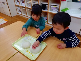 ユキノ先生が鏡餅を作って