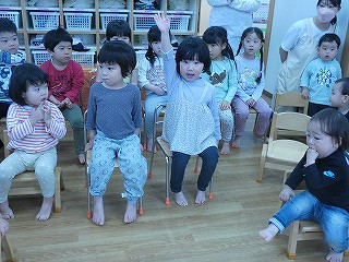 上手に座ってお話を聞きながら