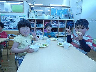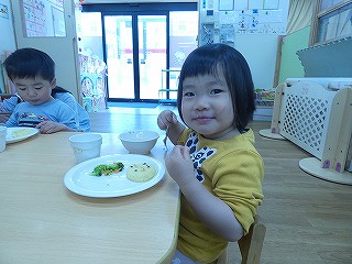 給食もモリモリたくさん食べられるよ!